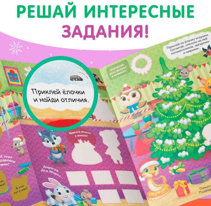 • на каждой стороне есть увлекательные задания: их нужно выполнять с помощью многоразовых наклеек и искать ответы под скретч-слоем;