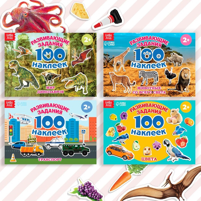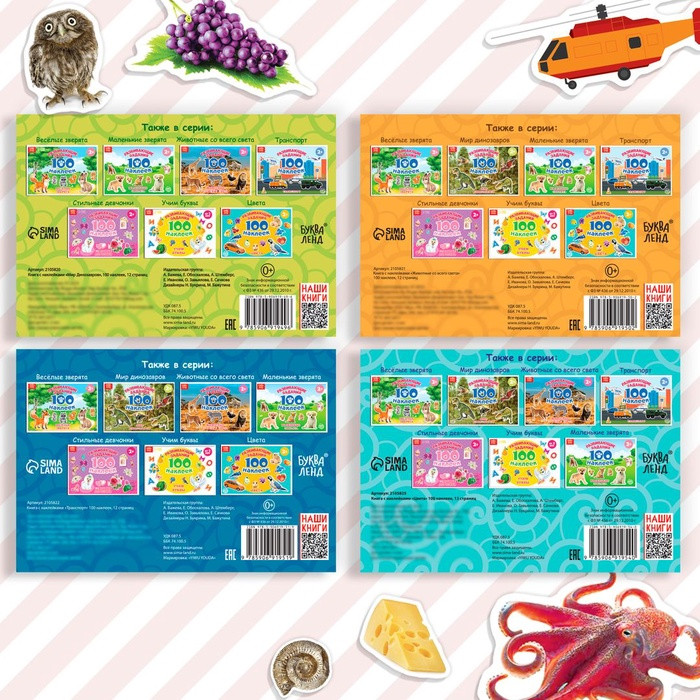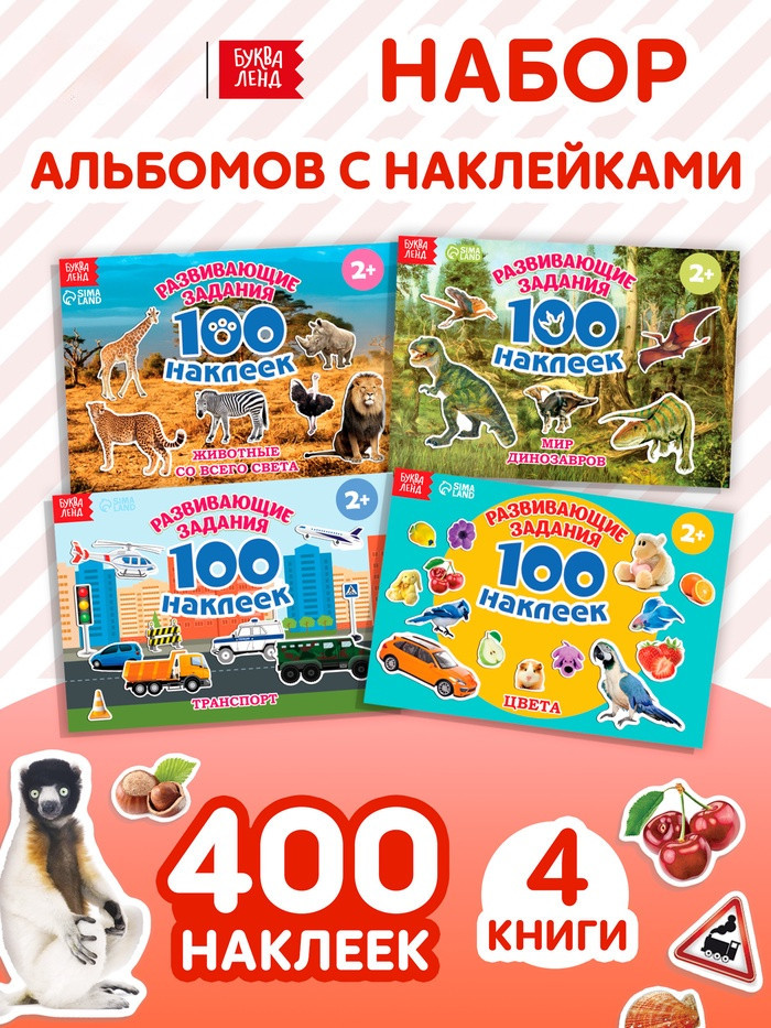 В данный момент этот товар отсутствует в продаже. Возможно, у нас найдется аналогичный или похожий товар здесь. С набором обучающих наклеек познавать окружающий мир ребёнку будет легко и интересно. малыш подружится с весёлыми зверятами и птичками, обучится основам арифметики и алфавиту. В каждом альбоме представлено 100 наклеек с красочными изображениями животных, растений, букв, фруктов, овощей и других важных предметов окружающего мира. яркие картинки положительно влияют на визуальное восприятие малыша, память и воображение.