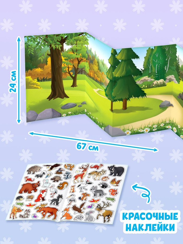Набор книг-раскладушек с наклейками «Изучаем животных»+38