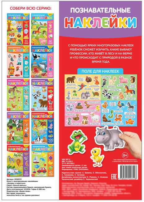 С помощью ярких многоразовых наклеек ребёнок сможет изучить, какие бывают профессии, кто живёт в лесу и на ферме и что происходит с природой в разное время года.Соберите всю серию наклеек и расширяйте кругозор малыша!Рекомендовано для детей от 2 лет. |