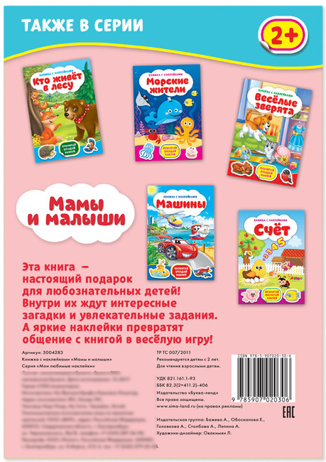 Наклейки «Мамы и малыши», 12 стр.В данный момент этот товар отсутствует в продаже. Возможно, у нас найдется аналогичный или похожий товар здесь. Серия книжек с наклейками предназначена для самых маленьких читателей. Занятия с такими книгами тренируют мелкую моторику, пространственное мышление и расширяют кругозор.Играйте с ребёнком, отгадывайте интересные загадки и знакомьтесь с милыми жителями.Листы книги гладкие и плотные. Стикеры одноразовые, но за счёт хорошего клеевого слоя их можно переклеить 1‒2 раза, если случайно прикрепите их не туда.Издание подходит малышам старше 2 лет. Для чтения взрослыми детям. |