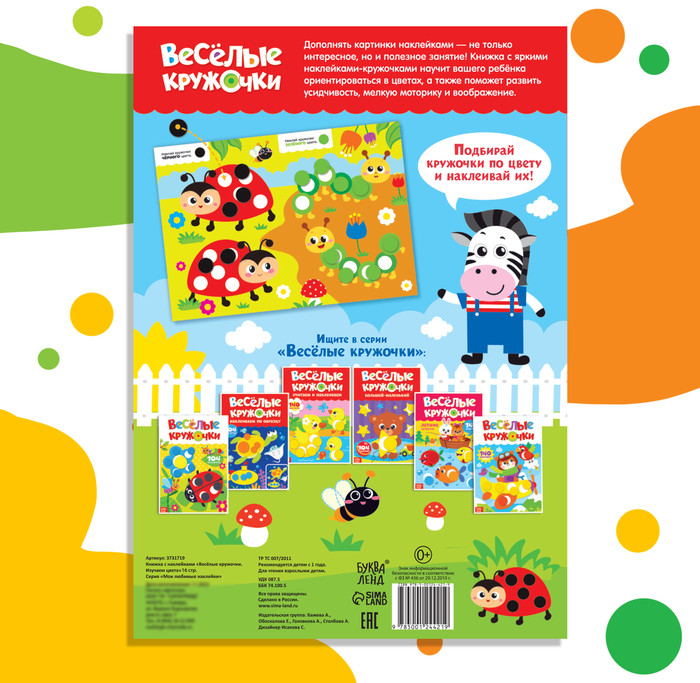 Наклейки «Весёлые кружочки. Изучаем цвета», формат А4, 16 стр.+15