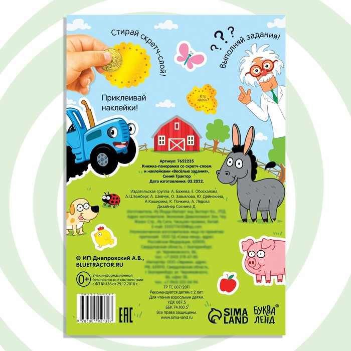 | Книжка-раскладушка со скретч-слоем и наклейками «Весёлые задания», Синий трактор