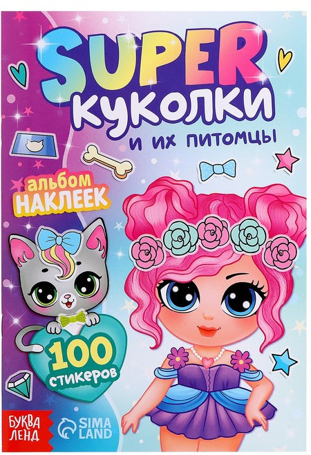 | Альбом наклеек «Super куколки и их питомцы», 100 стикеров