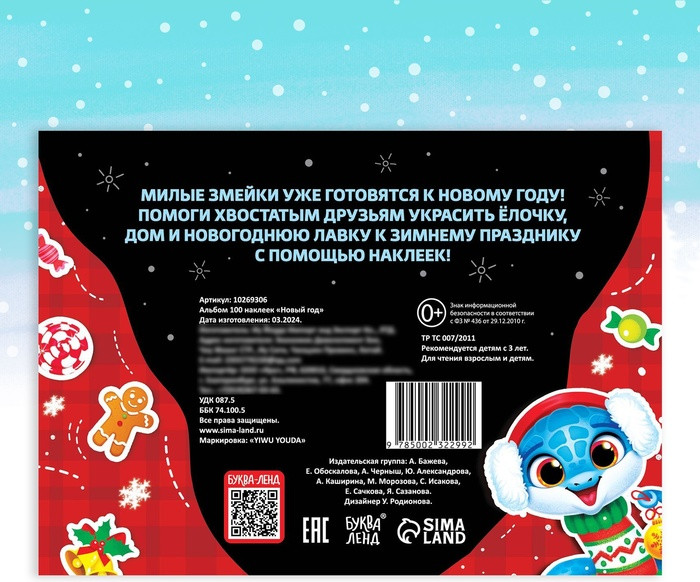 | Новогодний альбом 100 наклеек «Новый год», 4 стр. стикеров, змея