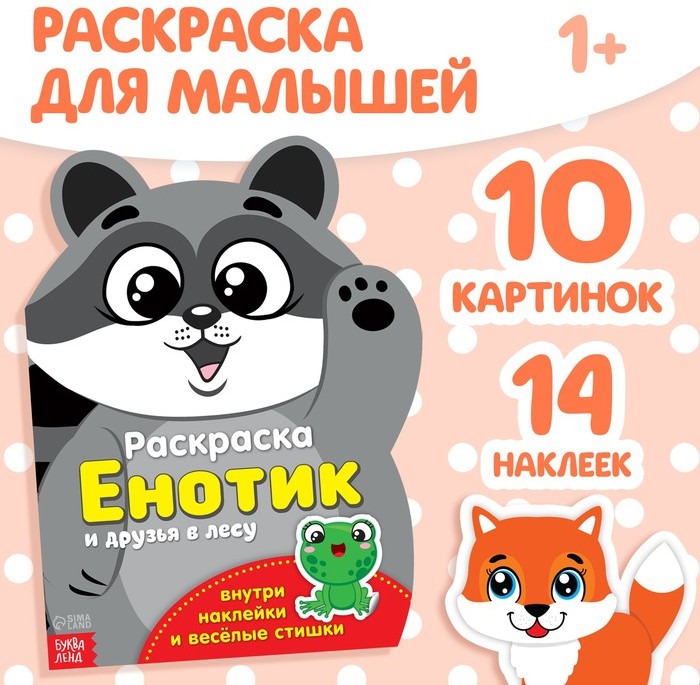 В данный момент этот товар отсутствует в продаже. Возможно, у нас найдется аналогичный или похожий товар здесь. Раскраска с наклейками «Енотик» — увлекательное занятие для ребёнка, сочетающее творчество и игровую активность. Внутри малыши найдут бумажные наклейки с изображениями животных. Это не только развлечение, но и полезное занятие, помогающее в развитии моторики и воображения.Что внутри? - 12 страниц с картинками для раскрашивания.