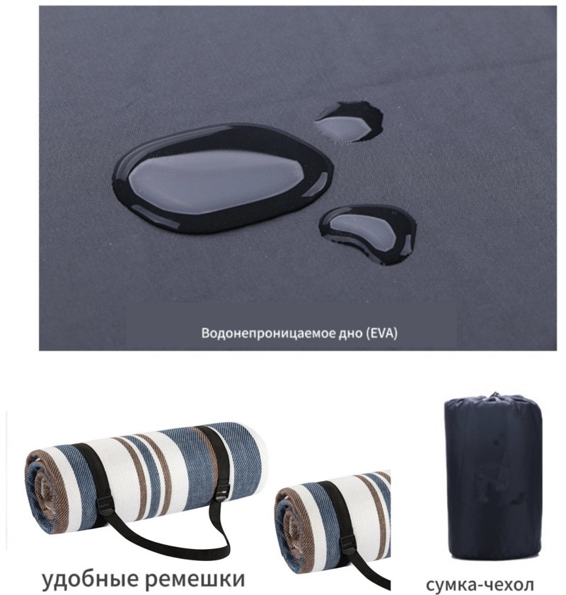 Пикниковый коврик с водонепроницаемым дном — комфорт в любой обстановке! Планируете отдых на природе, у моря или пикник в парке? Этот коврик обеспечит вам удобство и защиту от влаги в любой ситуации! Идеально подходит для пикников, пляжа, кемпинга, детских игр на полу, фестивалей и выездов за город. Надёжный спутник для отдыха на природе — компактный, лёгкий, практичный!