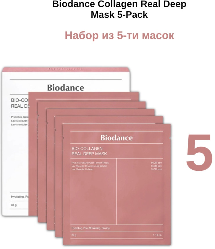 Biodance Набор масок для лица «Collagen Real Deep Mask 5-Pack»