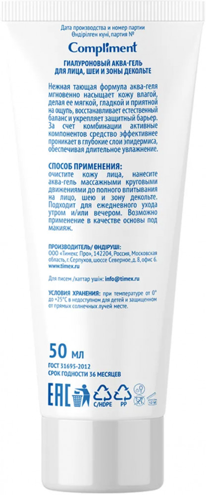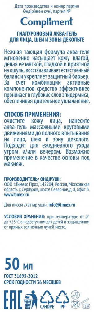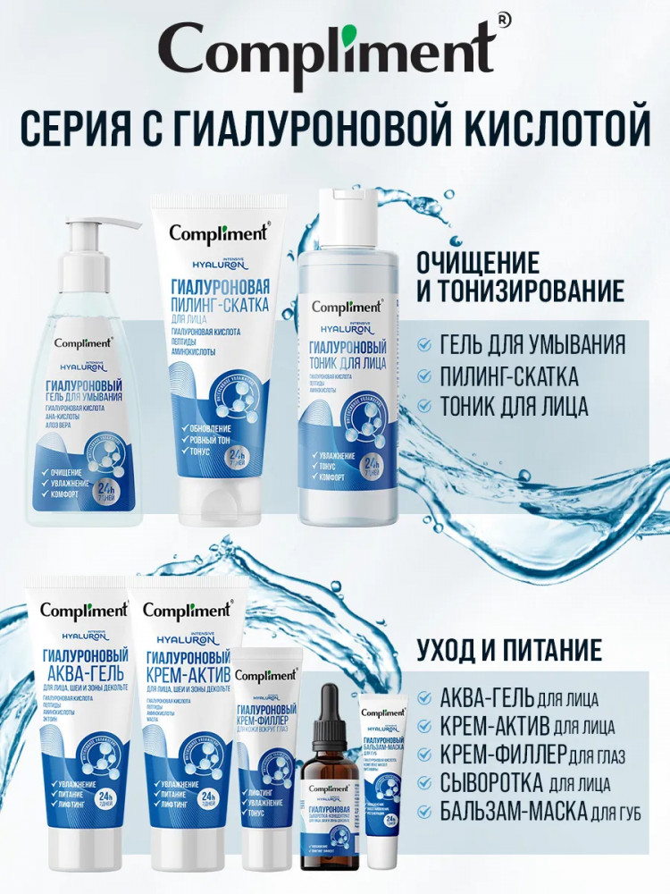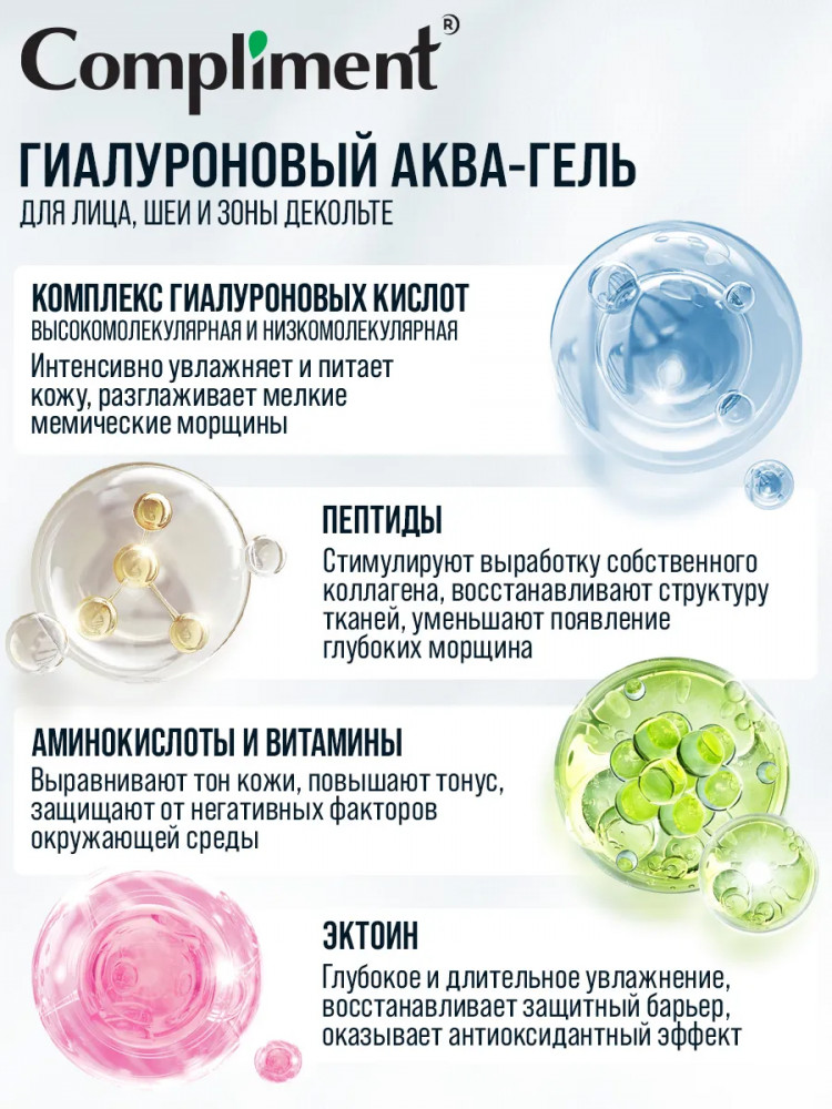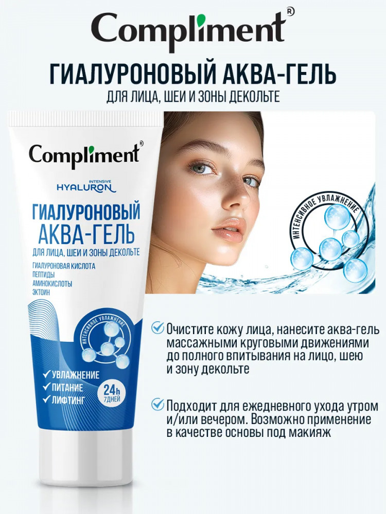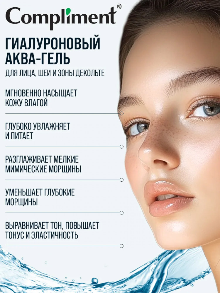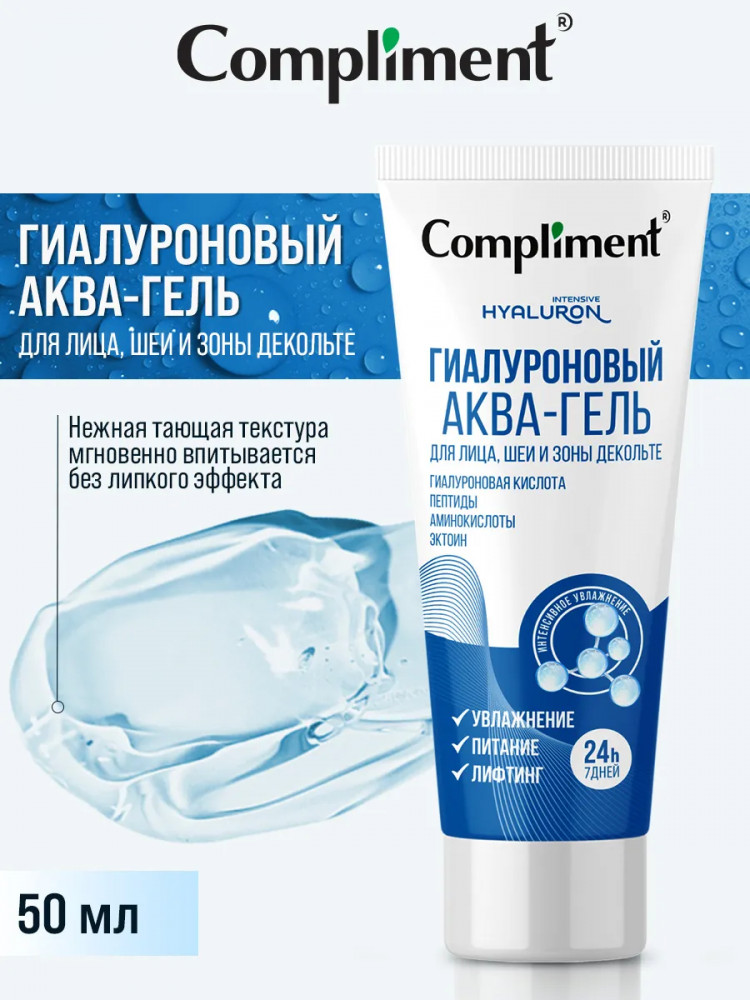 Compliment Аква-гель для лица, шеи и зоны декольте «Гиалуроновый»