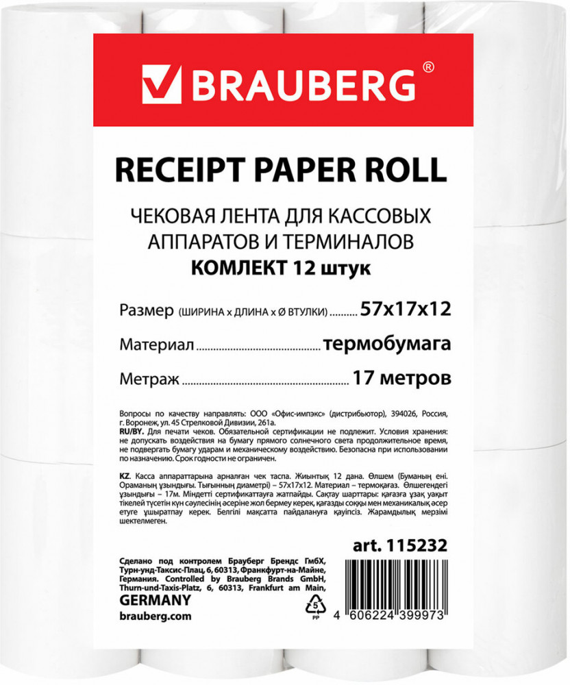 💳 Оплатить за товар можно при получении 🇰🇿 Есть бесплатная доставка по Казахстану от 1 дня 🎁 Копите бонусы с каждой покупки Чековая лента Brauberg применяется для кассовых аппаратов, платежных терминалов самообслуживания, банкоматов и т.п. Изготовлена на современном оборудовании, обеспечивающем ровную намотку и отсутствие бумажной пыли. |