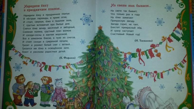 Моему сыну 4 года и книга пришлась как раз кстати, т.к. в этом году ждем Нового года как никогда. Подобраны интересные стихотворения и рассказы. Но иллюстраций маловато.