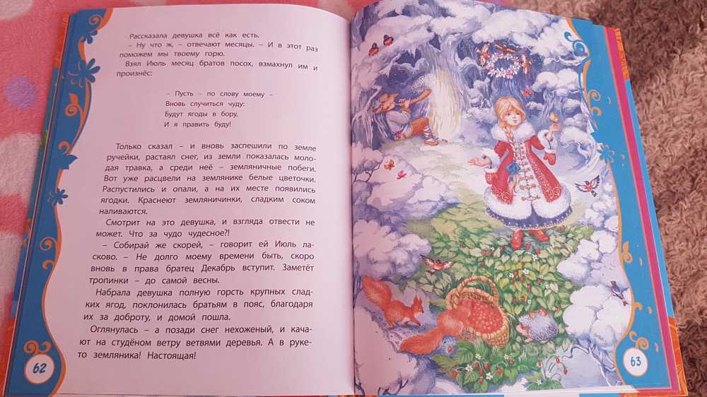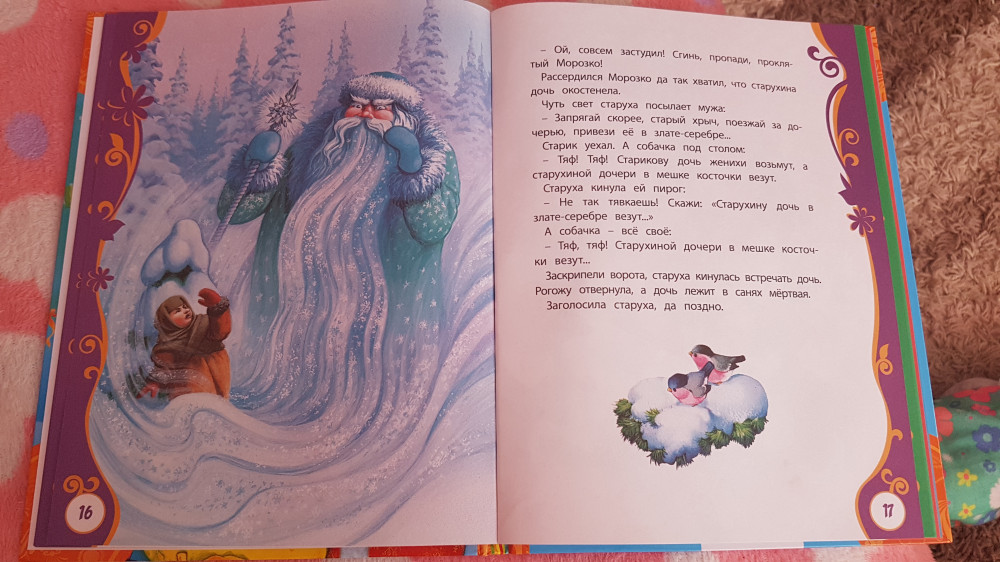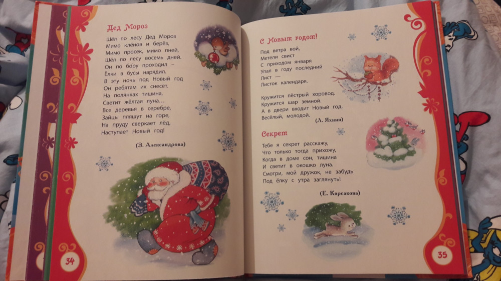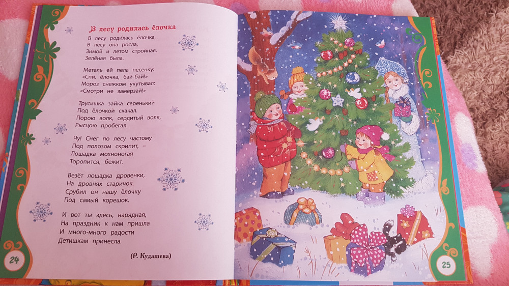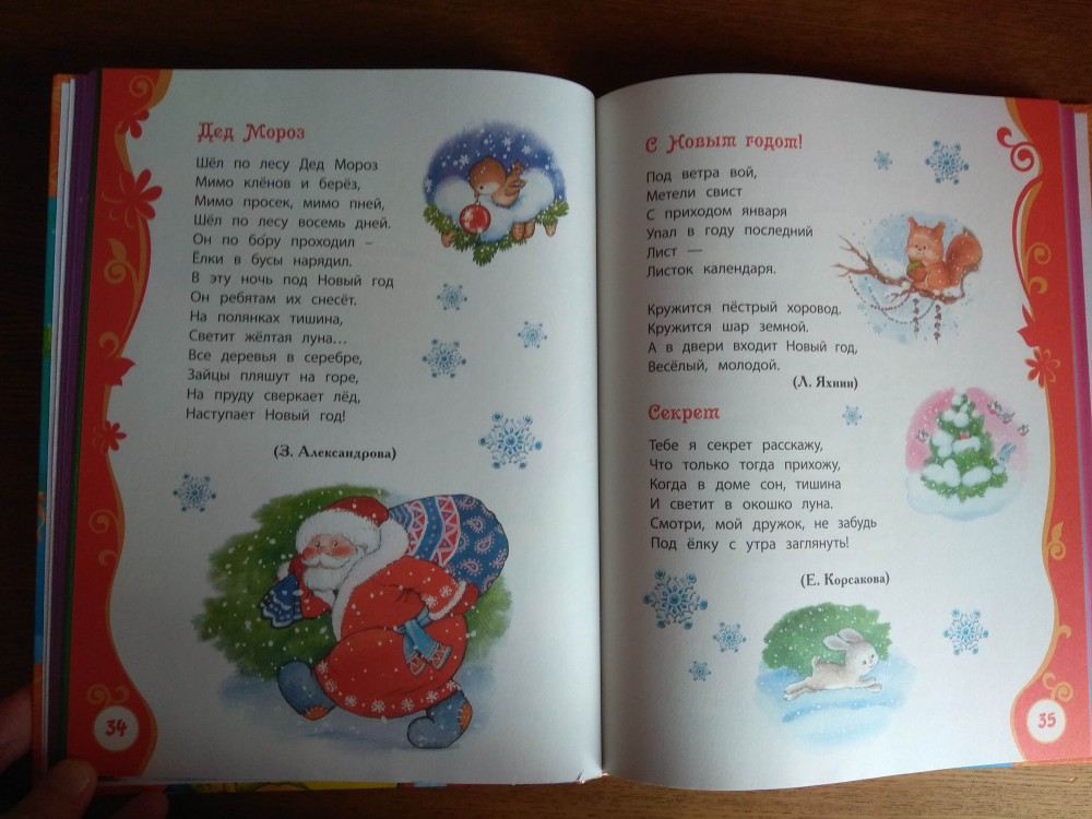 Приобрела две новогодние книги этой серии: "Большую новогоднюю книгу" и "Любимый праздник Новый год". Обе - отличный подарок к Новому году детям дошкольного и младшего школьного возраста. Хорошая подборка стихов и сказок, приятные иллюстрации. Но - есть стихи и сказки, которые повторяются: З.Александровой "Снежок", "Дед Мороз", Р.Кудашевой "В лесу родилась ёлочка", Н.Некрасова "Мороз-воевода". "Мороз-воевода" в книге "Большая новогодняя книга" приводится в сокращении. Повторяются и сказки: "Морозко" и "12 месяцев". Но "12 месяцев" приводятся в разных переводах/пересказах (Е.Неволиной и Д.Горбова). Жаль, что нет версии С.Маршака, где девочка собирала подснежники, а не фиалки. В целом, покупкой довольна. Спасибо Флипу за отличную работу!