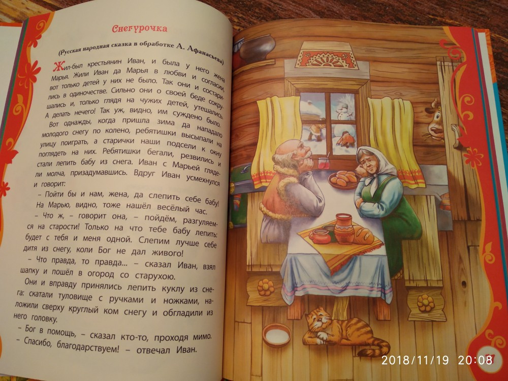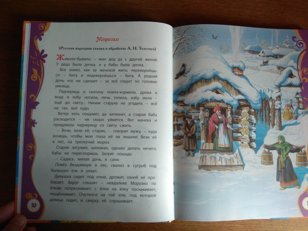 Замечательная книга! Много стихотворений и сказок. Несмотря, на то, что в некоторых сказках мало картинок, узоры по краям страниц (на каждой странице) компенсируют, красочность восприятия при чтении. Сыну, 5 лет, очень понравилось. Шрифт хороший, когда ребенок научится читать, вполне сможет сам ознакомится с книгой.