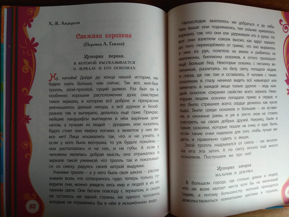 Книга полное разочарование... За красивой обложкой оказались невзрачные картинки. Сказки с минимальным количеством рисунков, а "Снежная Королева" вообще в жуткой адаптации, еще и с опечатками... Герда один раз даже стала Гордой.