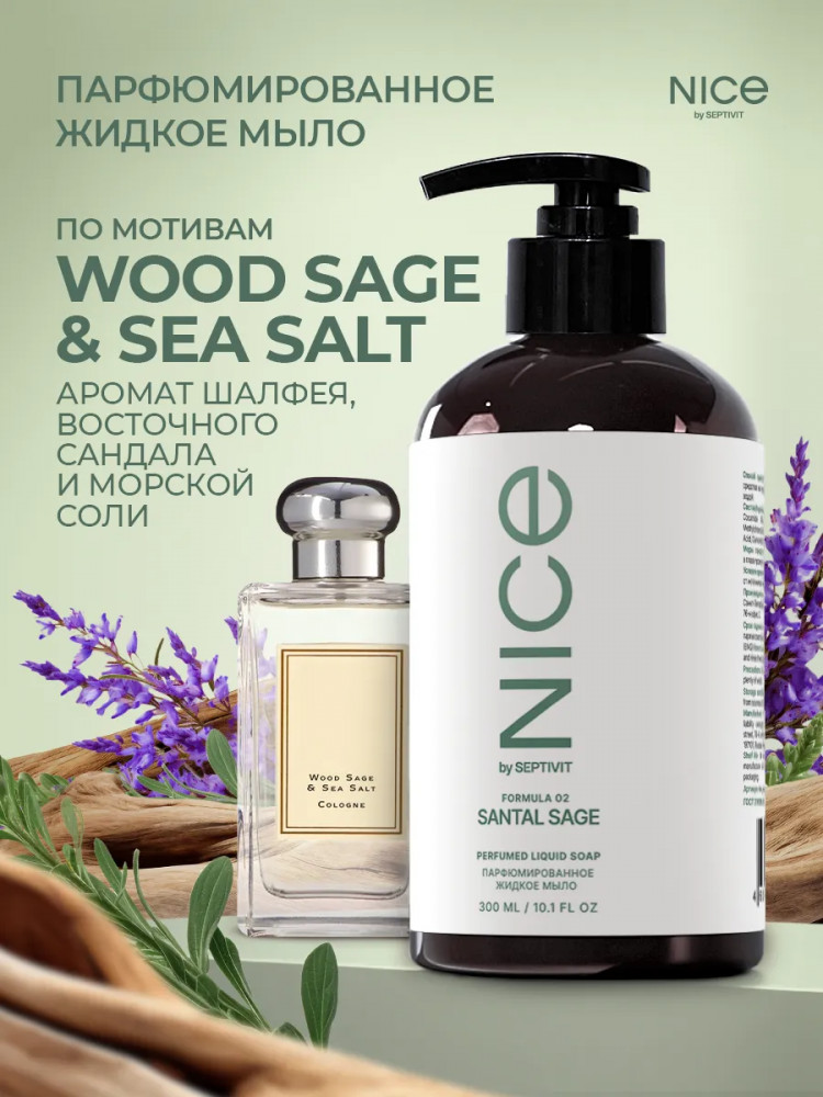 Nice Мыло для рук парфюмированное с ароматом шалфея, сандала и морской соли «Formula 02. Santal Sage»