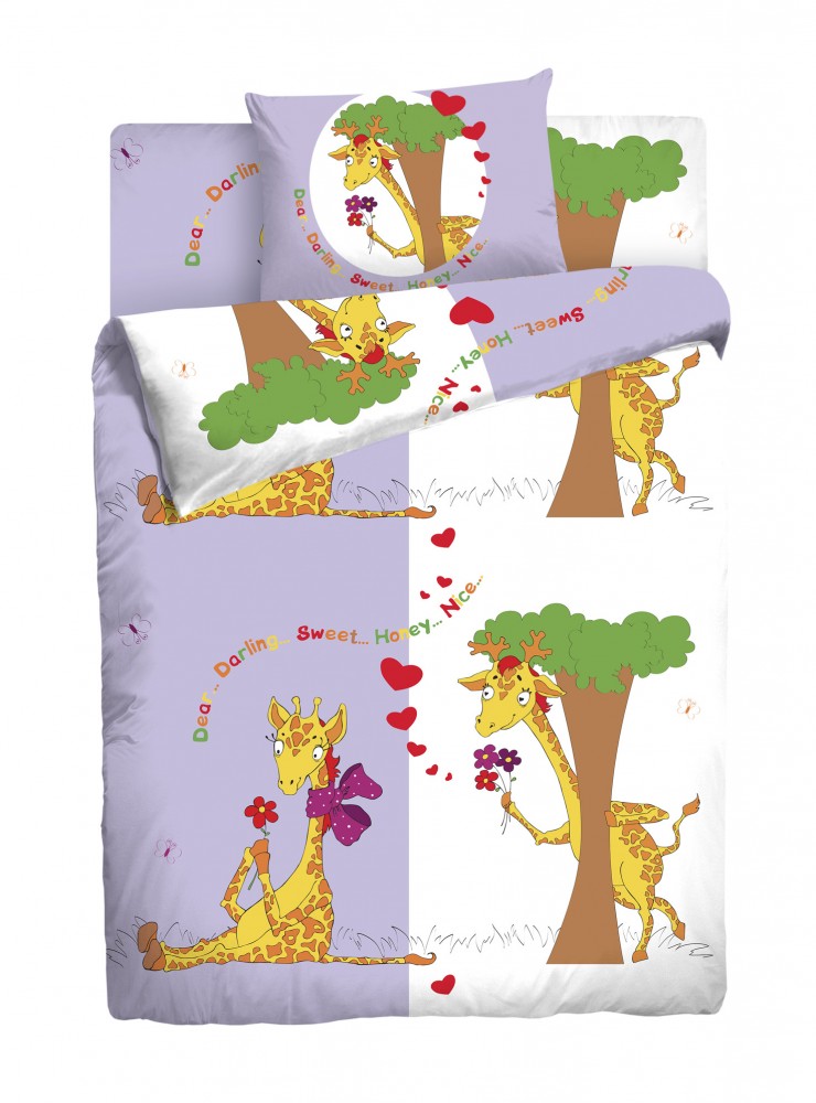 Детский комплект постельного белья «Влюбленные жирафы» создан из ткани бязь - гипоаллергенного, экологичного, высококачественного, крупнозакрученного волокна, благодаря чему эта ткань мягкая, нежная на ощупь и очень прочная, не образует катышков на поверхности. При соблюдении рекомендаций по уходу, это белье выдерживает много стирок (более 70), не линяет и не теряет свою первоначальную прочность. Рисунок для наволочек и простыни не подгоняют, поэтому он может не совпадать с фотографией в каталоге, что НЕ ЯВЛЯЕТСЯ БРАКОМ.