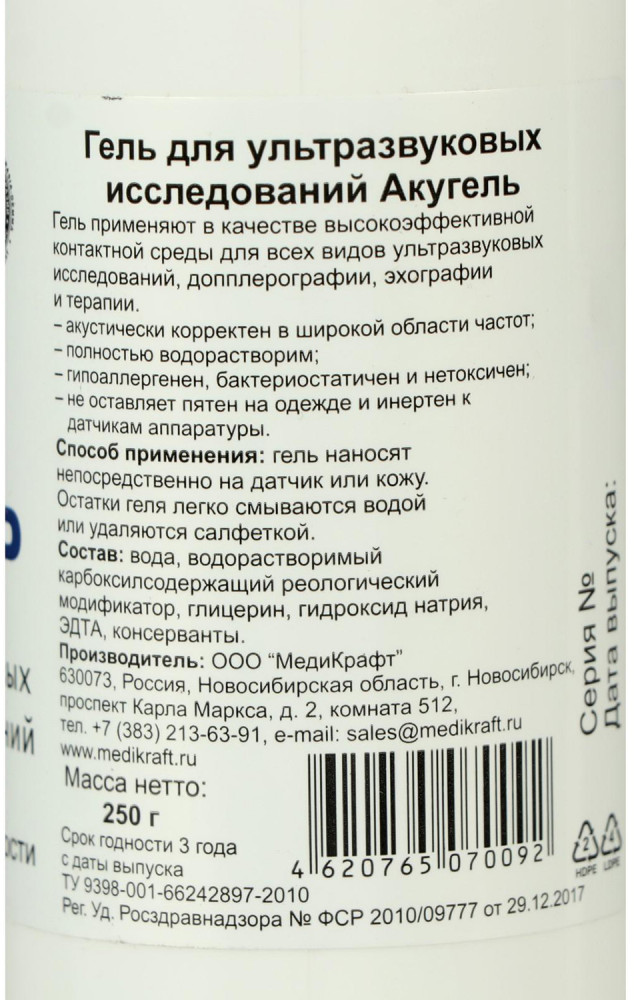 МедиКрафт Гель для УЗИ высокой вязкости «Акугель»+14