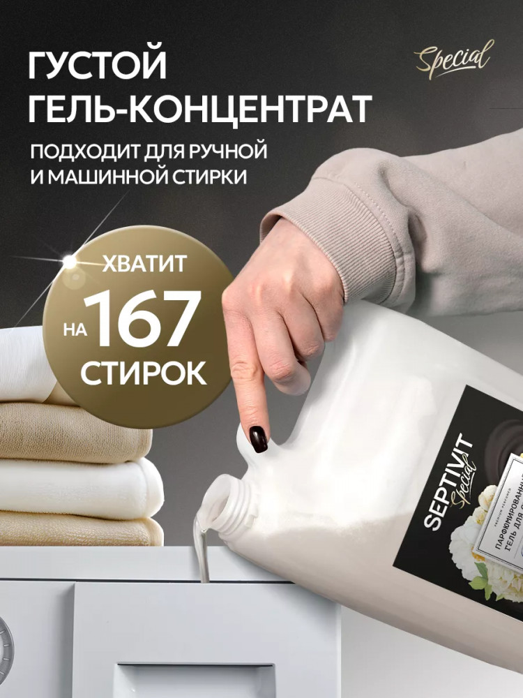 • при машинной стирке: добавьте гель в специальное отделение стиральной машины;