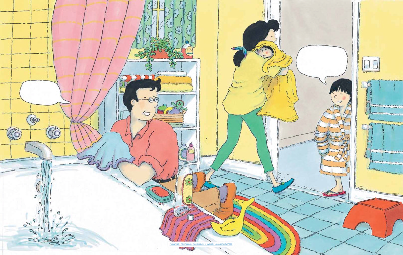 Книга нам очень нравится, больше подходит для детей от 3-5 лет, моей дочери уже 6, на многие вопросы мы уже знали ответы. Хорошее качество бумаги и прекрасно иллюстрированные страницы. Книга состоит из 6 тем: вопросы в ванной, в супермаркете, на кухне, в деревне и т.д. Рекомендую мамочкам для очень любознательных малышей.