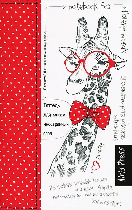 Классный симпатичный блокнотик, забавная жирафа на обложке и на клапанах, приятно будет записывать и учить слова!