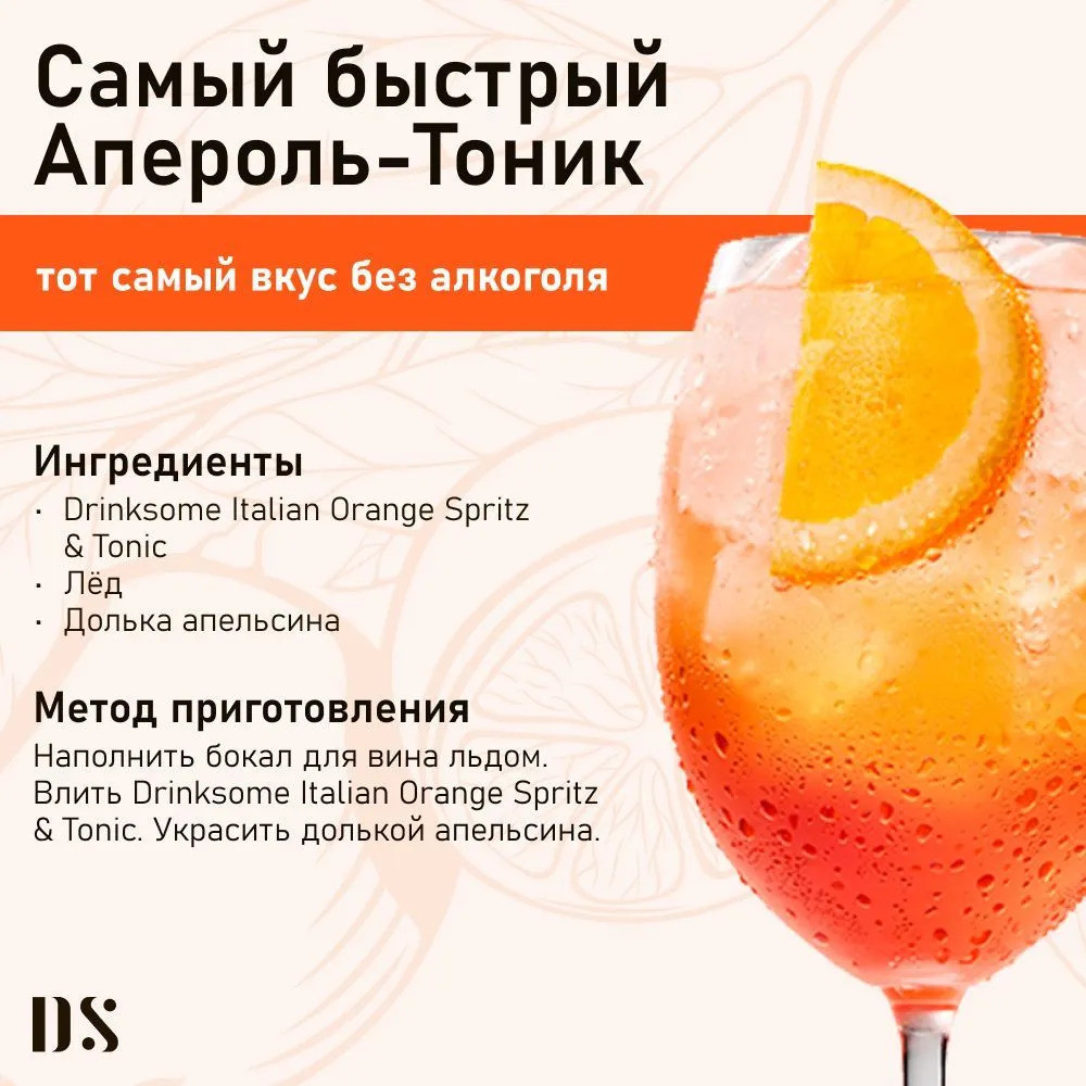 Drinksome Напиток безалкогольный «Italian Orange Spritz & Tonic»В данный момент этот товар отсутствует в продаже. Возможно, у нас найдется аналогичный или похожий товар здесь. Drinksome Italian Orange Spritz & Tonic — безалкогольный напиток схожий с апероля шприц, который сразу готов к употреблению. Апероль Шприц — один из самых распространенных коктейлей в мире. Drinksome предоставляет возможность познакомиться с этим напитком без вреда для здоровья. |
