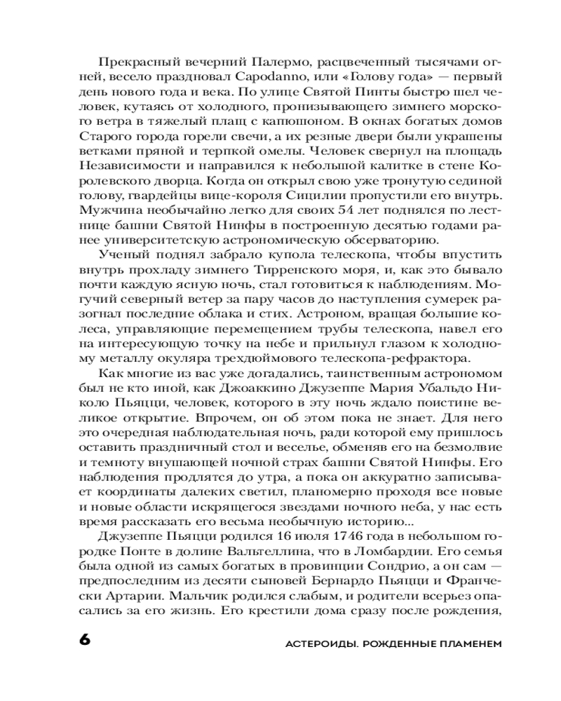 • об открытии первого астероида Церера и его открывателе — Джузеппе Пиацци, священнике, ставшим астрономом;