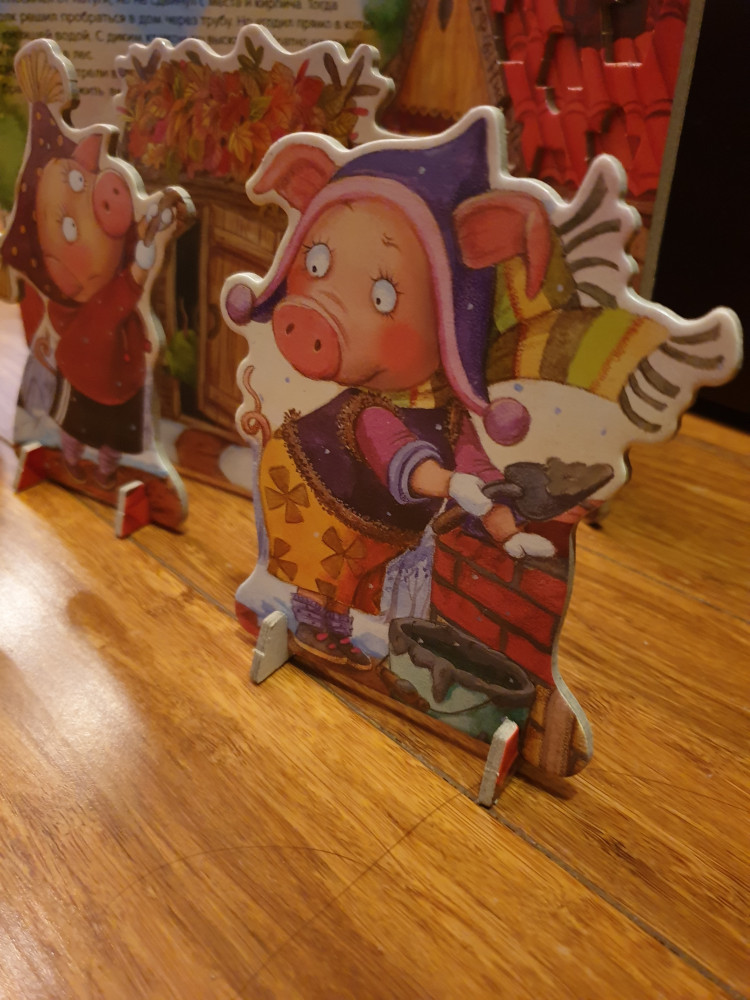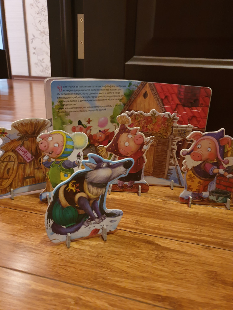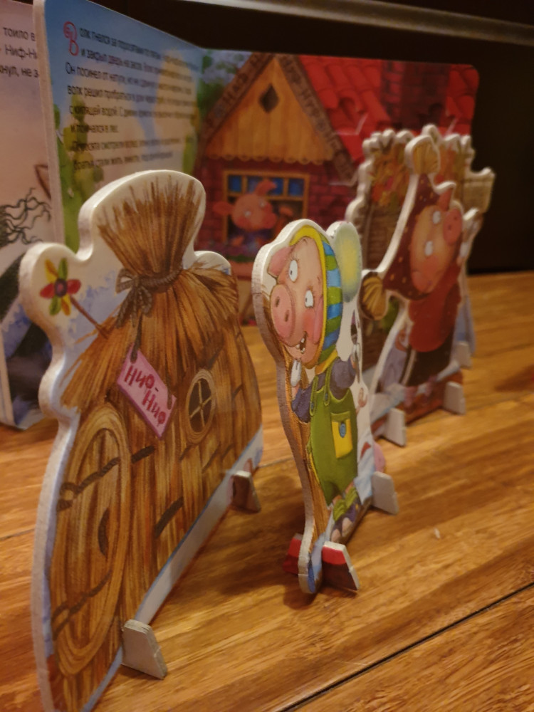 Книжка хорошая, красочная, все фигурки кроме домика из кирпича вынимать и с ними можно играть отдельно