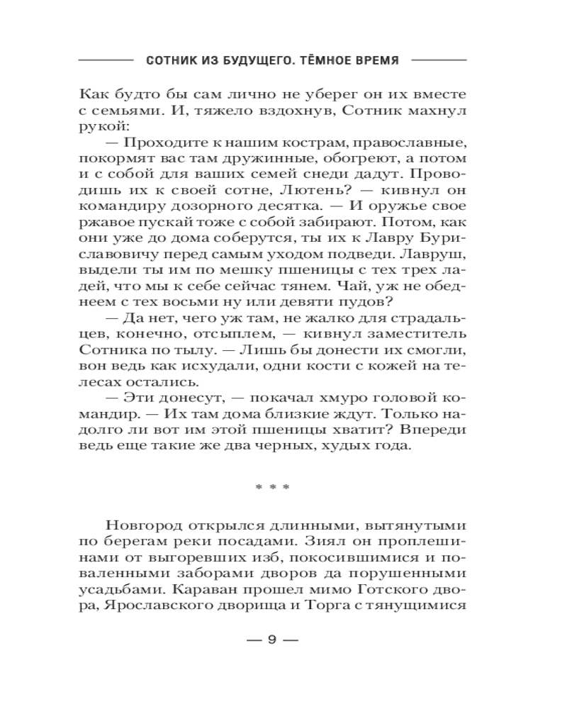 Серия: Военная боевая фантастика Шёл второй год великого голода и страшного мора, вызванного затяжным ненастьем, накрывшим всю Северную Русь. Городскую общину Великого Новгорода сотрясают бунты, кровавые внутренние конфликты и ссоры, как среди именитых людей, так и между его низами, простой городской чадью. Князь Ярослав изгнан с престола, а вся власть находится в руках временщиков бояр, погрязших в интригах. Многочисленные враги никогда не упустят возможности отрезать кус русской земли у её ослабевшего хозяина. Шесть лет прошло, как Юрьев пал к ногам крестоносцев, а теперь и Псков под немцами. Найдётся ли сила, которая остановит их и спасёт людей от голодной смерти?  |