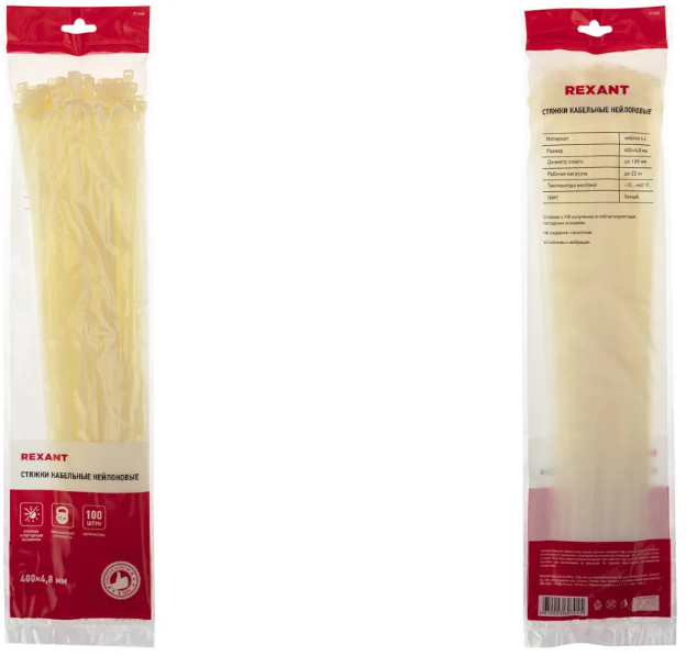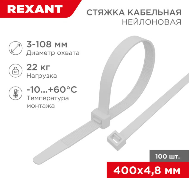 Rexant Стяжка кабельная нейлоноваяВ данный момент этот товар отсутствует в продаже. Возможно, у нас найдется аналогичный или похожий товар здесь. Нейлоновый хомут (кабельная стяжка) 400×4.8 мм белого цвета — простое и экономичное фиксирующее приспособление, применяемое для того, чтобы аккуратно организовать разбросанные на полу или свисающие под потолком провода/кабели, а также привести в порядок спутанные провода в распределительных шкафах. Использование стяжек в быту позволяет соединять детали конструкций, связывать вместе предметы, подвязывать растения и многое другое. Изделия, изготавливаемые из полиамида 6,6 (нейлон), просты в использовании. Для того чтобы установить хомут вручную необходимо совершить всего пару движений: вставить конец ленты в замок и затянуть. Отличительные свойства нейлоновых хомутов: высокая прочность на разрыв, пластичность, долгий срок службы, устойчивость к внешним факторам. |