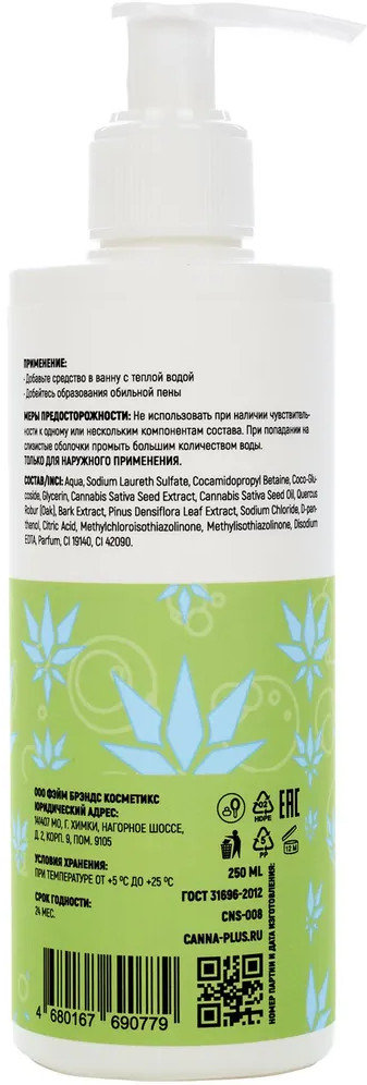 Canna+ Пена для ванны расслабляющая «Hydrating Bath Foam»