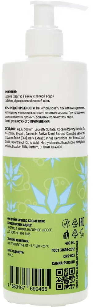 Canna+ Пена для ванны расслабляющая «Hydrating Bath Foam»