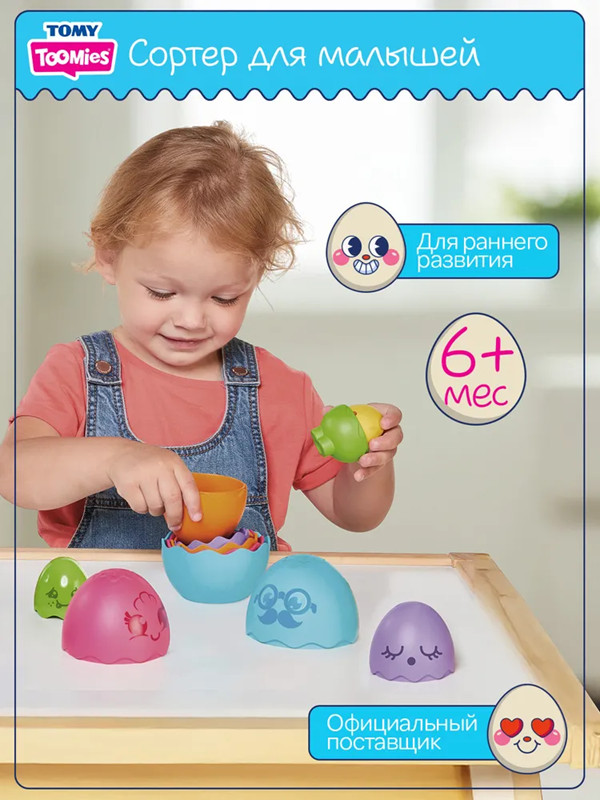💳 Оплатить за товар можно при получении 🇰🇿 Есть бесплатная доставка по Казахстану 🎁 Копите бонусы с каждой покупки Серия: Toomies Тумис — это мир, в котором обучение становится приключением! Развивающие игрушки Тумис растут вместе с малышом: они безопасные, интерактивные и наполнены сюрпризами! Откройте для малыша увлекательный мир игры с сортером «Цыпленок в скорлупке»! Эта яркая развивающая игрушка предназначена для детей от 6 месяцев. Внутри большого яйца спрятались 5 ярких разноцветных скорлупок, которые складываются друг в друга по размеру. В самом маленьком яичке сидит забавный цыпленок, который весело пищит при нажатии! |