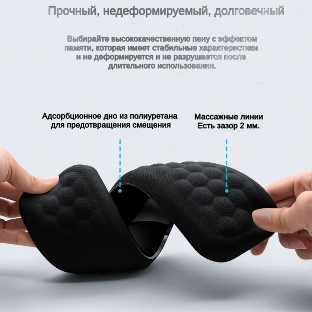 Нескользящая резиновая основа и универсальная совместимость: опора для запястий клавиатуры имеет нескользящую резиновую основу, которая предотвращает скольжение на различных поверхностях. Благодаря универсальной совместимости, она подходит для большинства клавиатур и мышей, обеспечивая надежную фиксацию и стабильность.