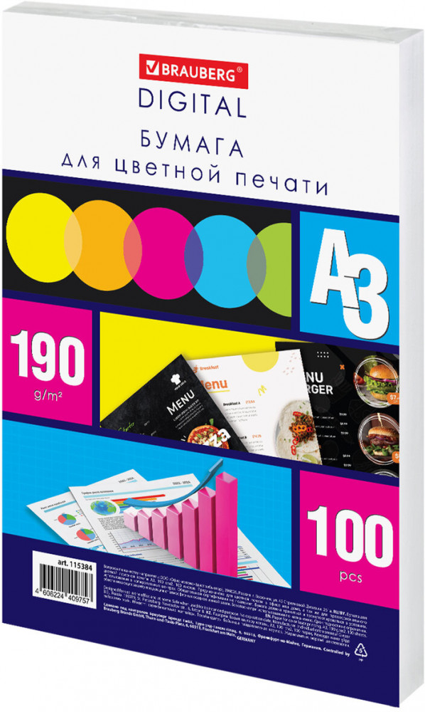 Оптимальные характеристики бумаги Brauberg Digital гарантируют отличный результат при двусторонней печати и копировании. Подходит для всех типов офисной техники, а также для различных видов творчества и создания презентационных материалов. Сырьем для Brauberg Digital является офсетная бумага производства AO «СЛПК» (г. Сыктывкар, Российская Федерация). В пачке 100 листов плотностью 190 г/м2 А3 формата.