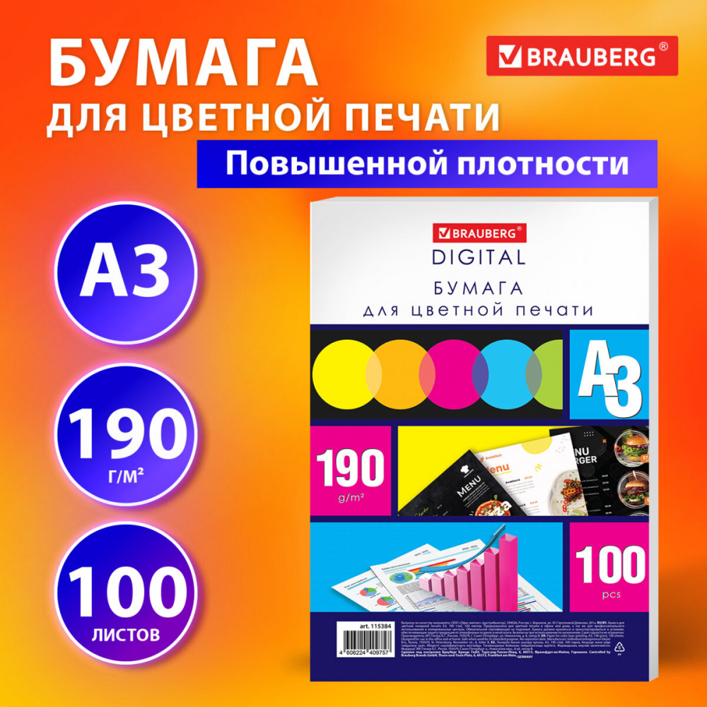 В данный момент этот товар отсутствует в продаже. Возможно, у нас найдется аналогичный или похожий товар здесь. Серия: Digital Brauberg Digital — многоцелевая бумага рекомендуется для цветной печати в офисе или дома, а также для использования в копировальных центрах.