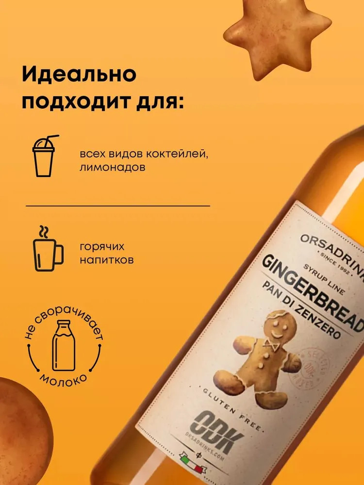 Сироп для лимонада «Имбирный пряник» особенно актуален в зимние холода. Но и летом с его помощью можно создавать потрясающие коктейли и готовить удивительные десерты. Сироп для напитков «Имбирный пряник» со вкусом любимого зимнего десерта. Немного имбиря, миндаль и крошка печенья — это незабываемый вкус волшебства нового года. Его любят дети и взрослые, этот десерт стал одним из основных в новогодние торжества и прочно ассоциируется с теплом домашнего камина.