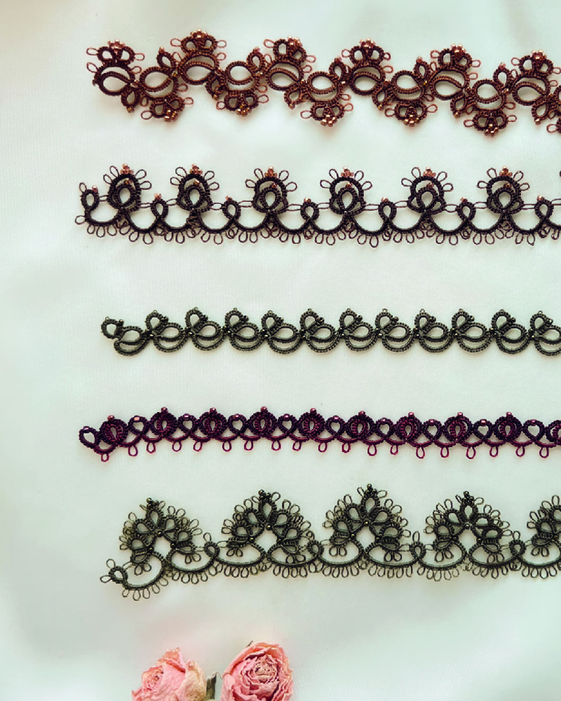 • базовые мотивы фриволите, на основе которых можно создать свои разнообразные узоры;