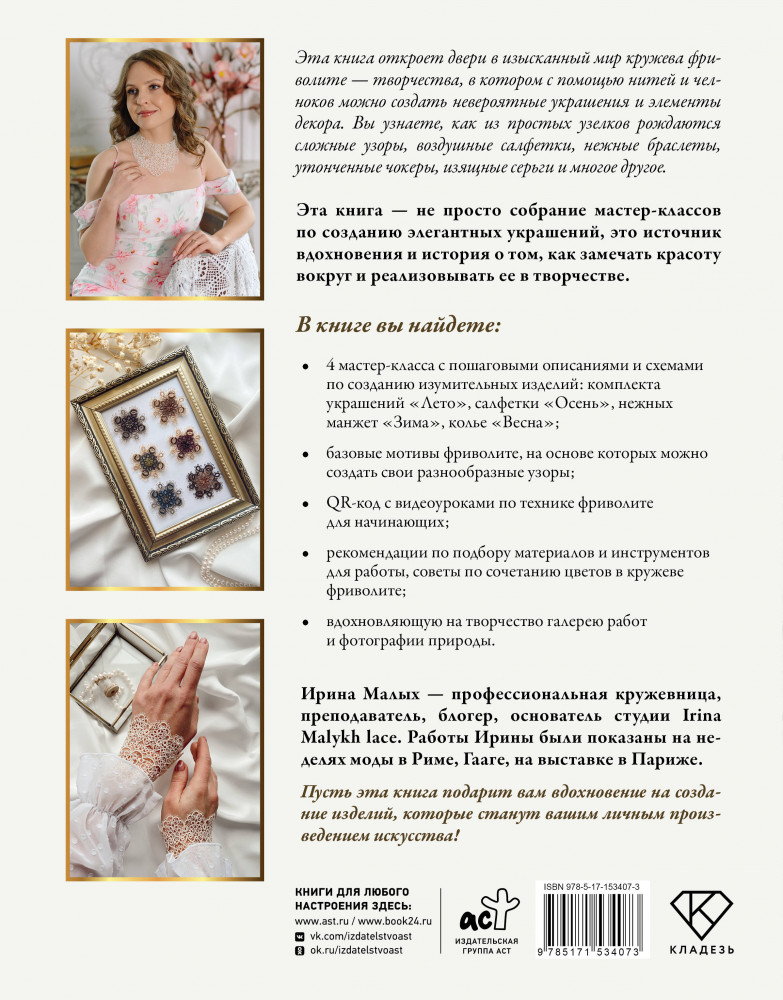 | Фриволите. Тонкое кружево, вдохновляющие мастер-классы Ирина Михайловна Малых +328 (бонусов)