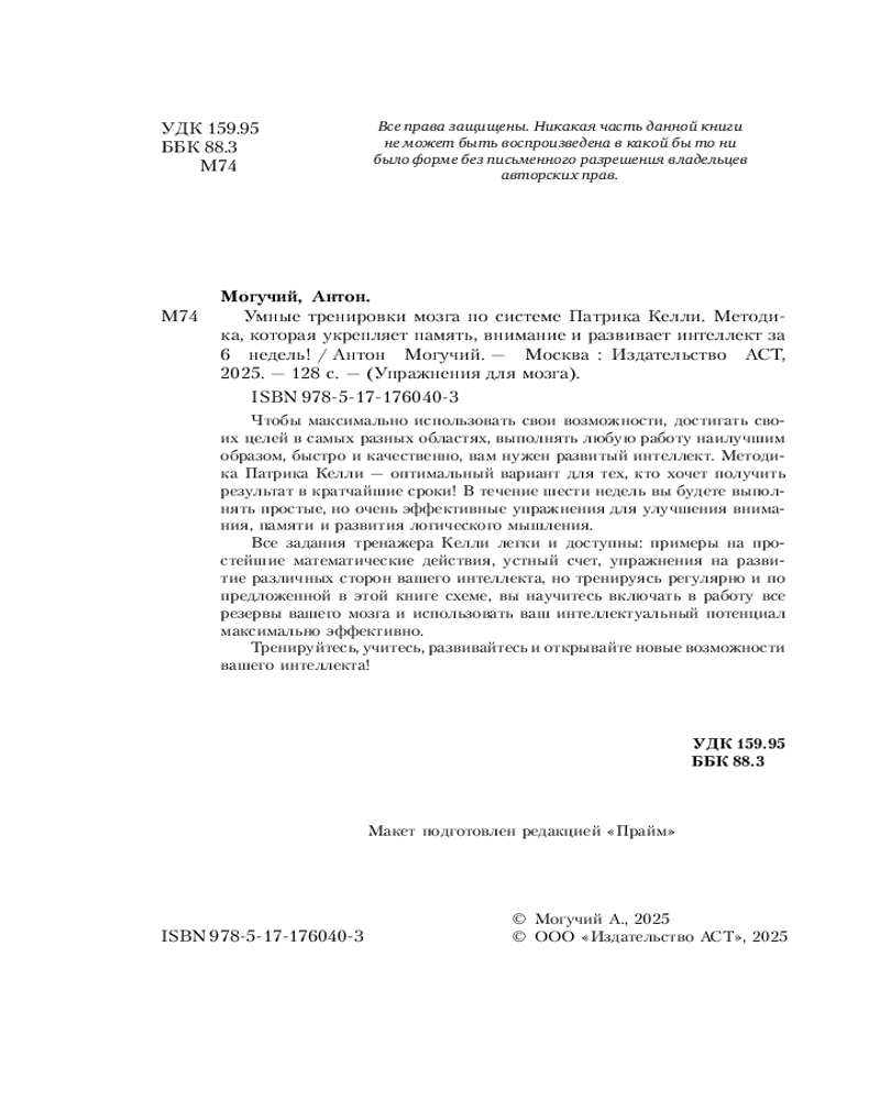 Умные тренировки мозга по системе Патрика Келли. Методика, которая укрепляет память, внимание и развивает интеллект за 6 недель!+28