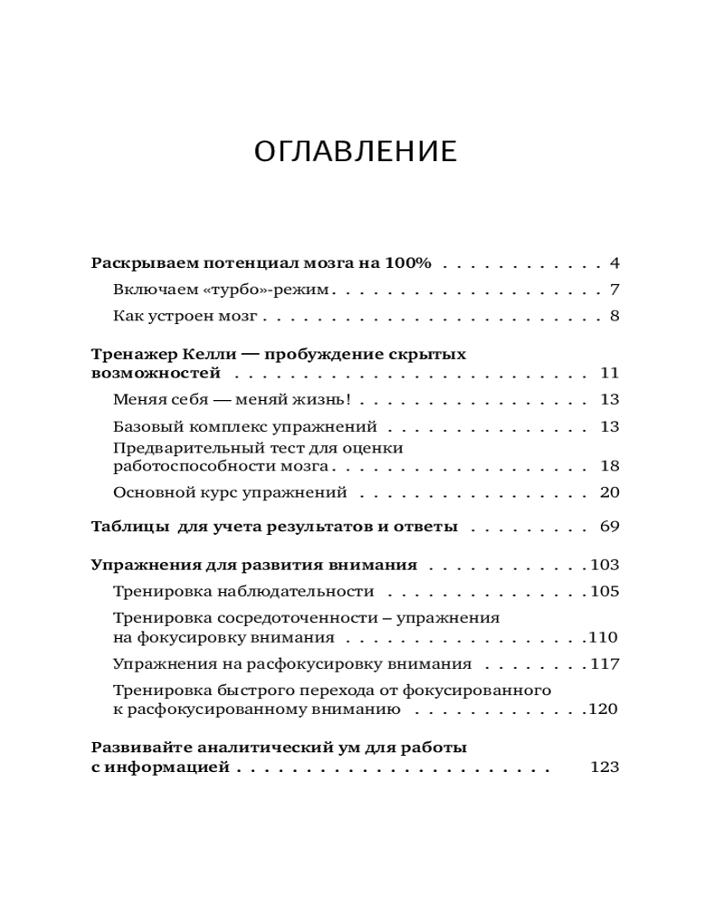 💳 Оплатить за товар можно при получении 🇰🇿 Есть бесплатная доставка по Казахстану от 1 дня 🎁 Копите бонусы с каждой покупки Серия: Упражнения для мозга Чтобы максимально использовать свои возможности, достигать своих целей в самых разных областях, выполнять любую работу наилучшим образом, быстро и качественно, вам нужен развитый интеллект. Методика Патрика Келли — оптимальный вариант для тех, кто хочет получить результат в кратчайшие сроки! Регулярно выполняйте предложенные в книге упражнения в течение шести недель, и результат не заставит себя ждать! Примеры на простейшие математические действия, устный счет, упражнения на развитие внимания, наблюдательности и логического мышления не только повысят ваш IQ, но и помогут вам раскрыть новые возможности вашего интеллекта. Тренируйтесь, учитесь, развивайтесь и открывайте новые возможности своего мозга! Задания можно выполнять прямо в книге. Книга в мягкой обложке. |