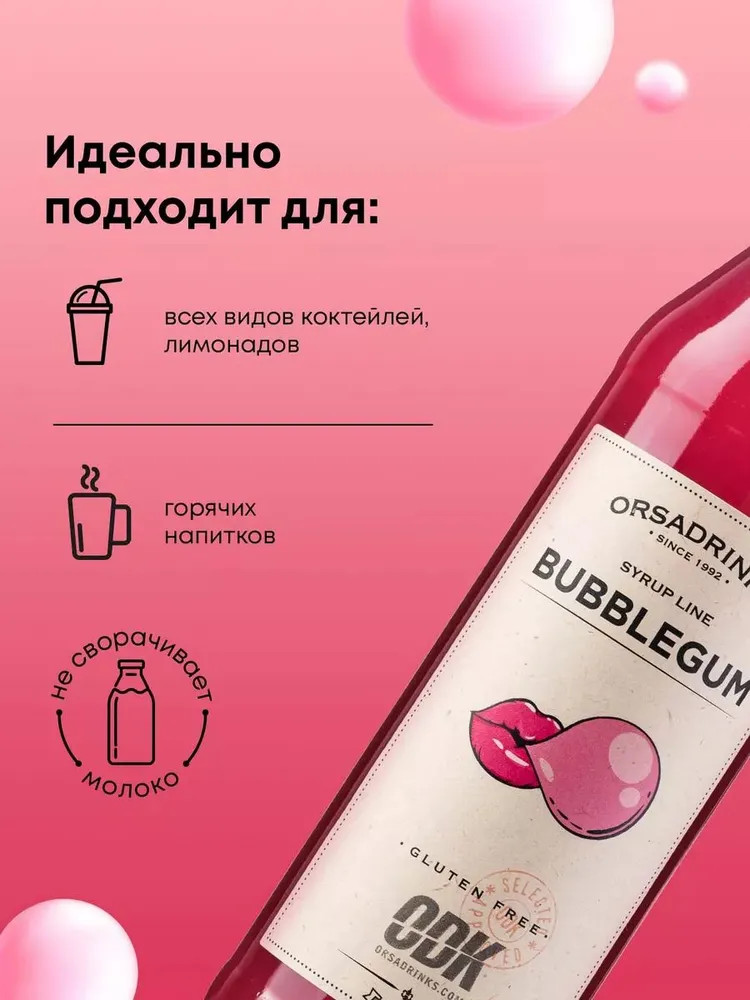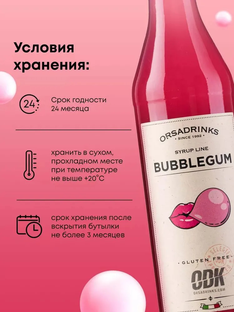 Сироп для напитков со вкусом жвачки имеет десятки вариантов применения. В первую очередь его используют для безалкогольных и алкогольных напитков. Но есть и другие варианты использования: сироп для лимонада; сироп для мороженного; сироп для десертов; для выпечки; для пропитки тортов. Он не слишком гармонирует с кофе, но иногда бариста осмеливаются сочетать его с отдельными кофейными напитками. Также вряд ли подойдет как сироп для чая, но для тех, кто любит яркие сочные вкусы его можно использовать как заменитель сахара. Хотите удивить сладкоежку — преподнесите ему этот вкусный подарок. Он обязательно станет любимым ингредиентов при экспериментах с коктейлями и сладостями. Не сворачивается в горячем молоке.