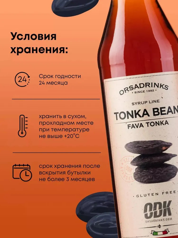 Оригинальный сироп для напитков «Бобы тонка» сразу оценили поклонники сладких, насыщенный вкусов. Он неповторимый и удивительный, попробуйте его. Сироп для коктейлей «Бобы тонка» раскрывается мягкими шоколадными нотами с оттенками миндаля, корицы и карамели. В нем заметны горьковатые нотки чернослива, которые добавляют изысканность вкусу. Сладость дает приятное послевкусие, а аромат кружит голову.