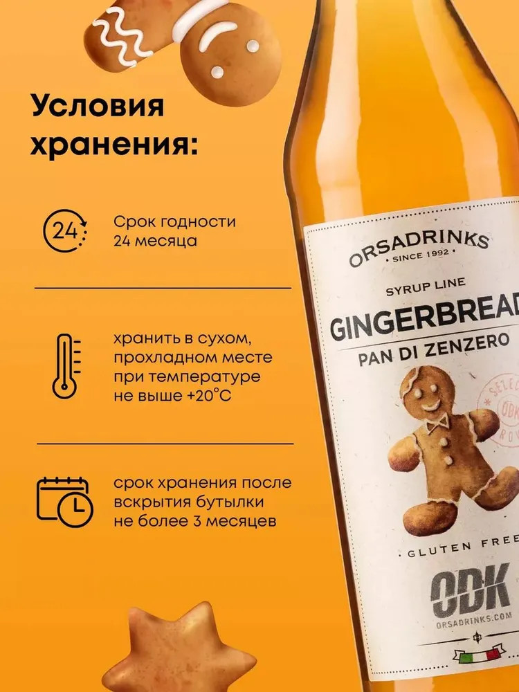 Сироп для лимонада «Имбирный пряник» особенно актуален в зимние холода. Но и летом с его помощью можно создавать потрясающие коктейли и готовить удивительные десерты. Сироп для напитков «Имбирный пряник» со вкусом любимого зимнего десерта. Немного имбиря, миндаль и крошка печенья — это незабываемый вкус волшебства нового года. Его любят дети и взрослые, этот десерт стал одним из основных в новогодние торжества и прочно ассоциируется с теплом домашнего камина.