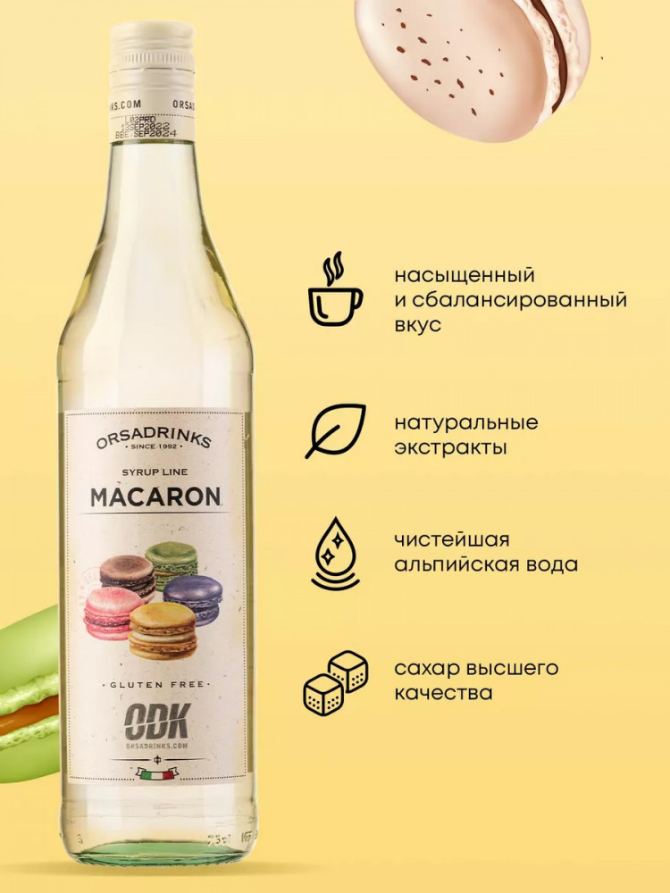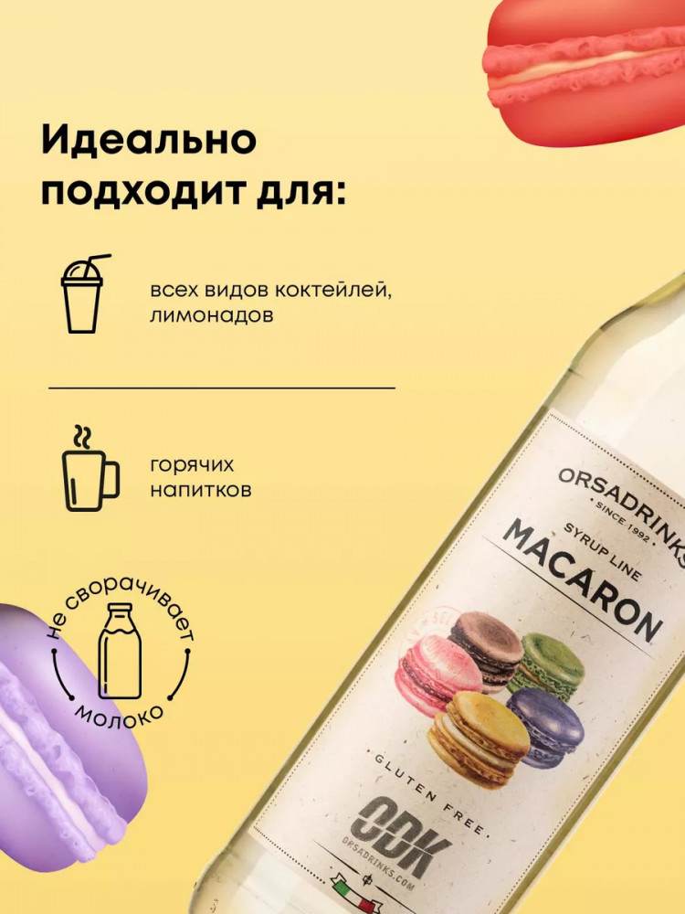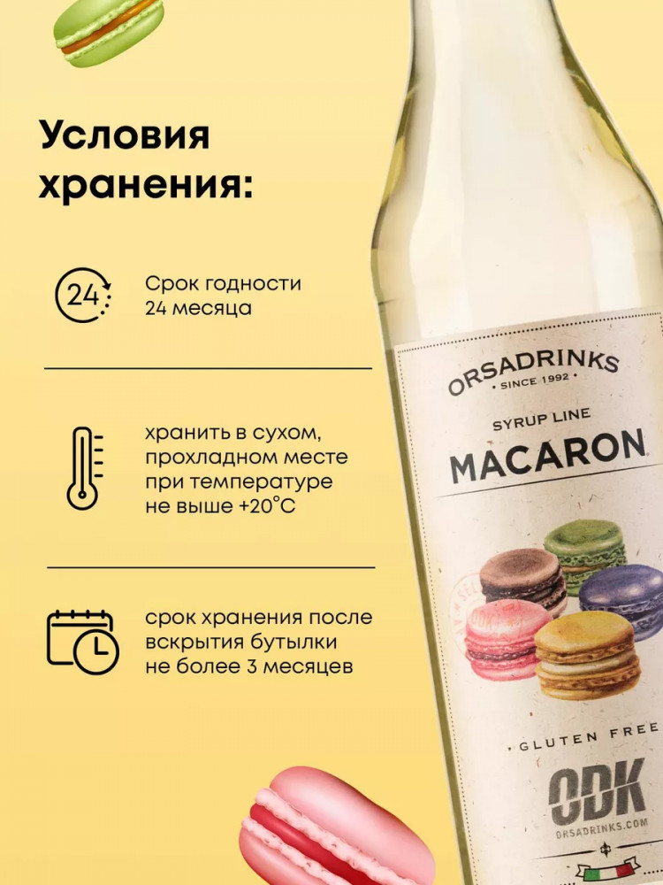 Применение: сироп «Печенье Макарон» — вкусный подарок для повара и кондитера. Это любимая добавка всех, кто любит эксперименты с рецептами сладостей, потому что его используют в разных вариантах: сироп для мороженного; для пропитки торта; для украшения пирожных; сироп для десертов; сироп для выпечки. Сливочно-миндальный вкус идеален с кофе, попробуйте такой сироп для кофе или кофейных напитков и он станет одним из ваших любимых вариантов заменителя сахара. Также неплохо сочетается с фруктов-ягодными смузи. Вы оцените по достоинству его бодрящий аромат, сумеете разнообразить свой рацион вкуснейшими блюдами и потрясающими напитками. Не сворачивается в горячем молоке.
