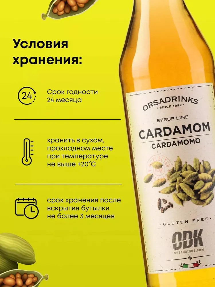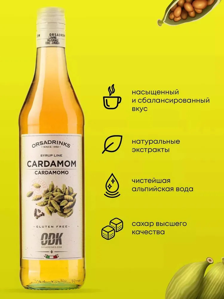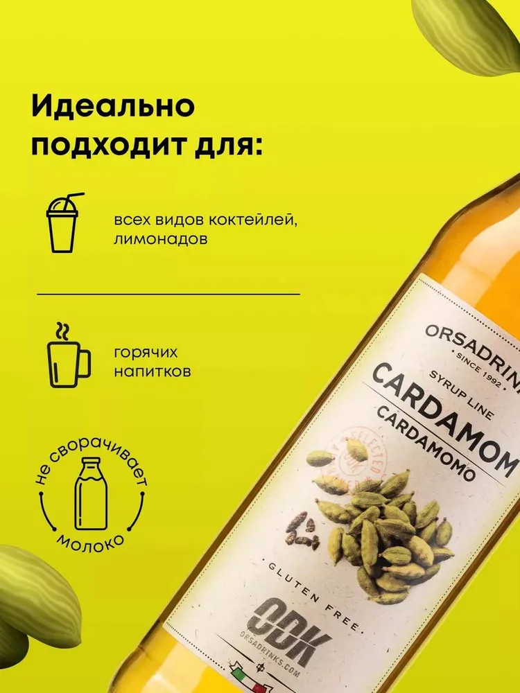 Сироп для безалкогольных и алкогольных напитков особенно популярен как заменитель сахара для чая или добавка в лимонады. Травяной вкус отлично освежает, утоляет жажду, поэтому его предпочитают использовать в качестве ингредиента при создании прохладительных рецептов. Но не только бармены работают с сиропом. Кардамон — это отличный сироп для кофе и прекрасный вариант сиропа для мороженого. Пару капель в смузи изменит вкус, сделает его бодрящим и насыщенным. Кондитеры используют его для выпечки и десертов, часто добавляют для пропитки тортов. Экспериментируйте с рецептами, выбирайте вкусный сироп, чтобы создавать новые потрясающие вкусы. Пусть этот вкусный подарок поможет вам разнообразить свое меню. Не сворачивается в горячем молоке.