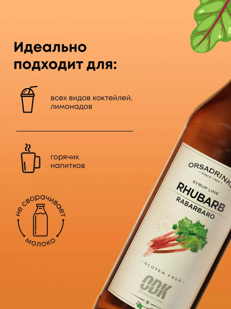 Применение: сироп для напитков «Ревень» для безалкогольных и алкогольных коктейлей подходит просто идеально. Его нейтральный вкус гармоничен с легким алкоголем, крепким спиртным и станет незаменимым как сироп для лимонада, чтобы создавать новые освежающие вкусы с привычными сортами. Также активно используют его для десертов: для пропитки тортов; украшения выпечки; оформления пирожных. Хотите изменить вкус — сироп для мороженного «Ревень» поможет немного пODKорректировать рецепт. Стремитесь разнообразить чай — его часто рекомендуют использовать как сироп для чая, причем актуален продукт как заменитель сахара. Не сворачивается в горячем молоке.