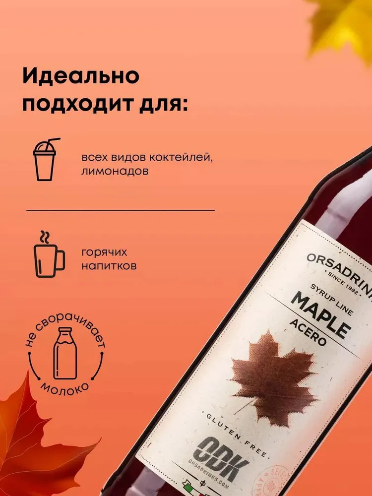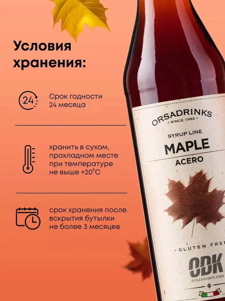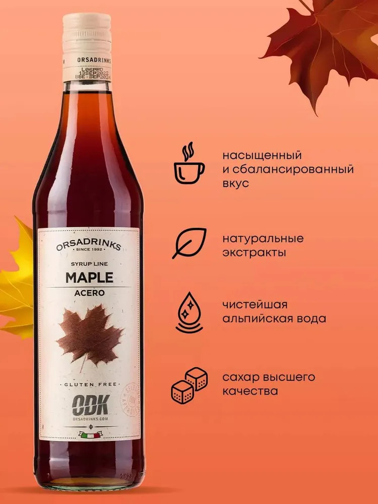 Традиционная канадская сладость теперь доступна и нам. Неповторимый «Кленовый сироп» как способ разнообразить ваше меню. Сироп для напитков «Кленовый» имеет приятный аромат и вкус сладкого березового сока. Он нежный и не приторный, поэтому часто становится идеальным дополнением к разным блюдам. Едва ощутимые медовые нотки добавляют продукту индивидуальность.