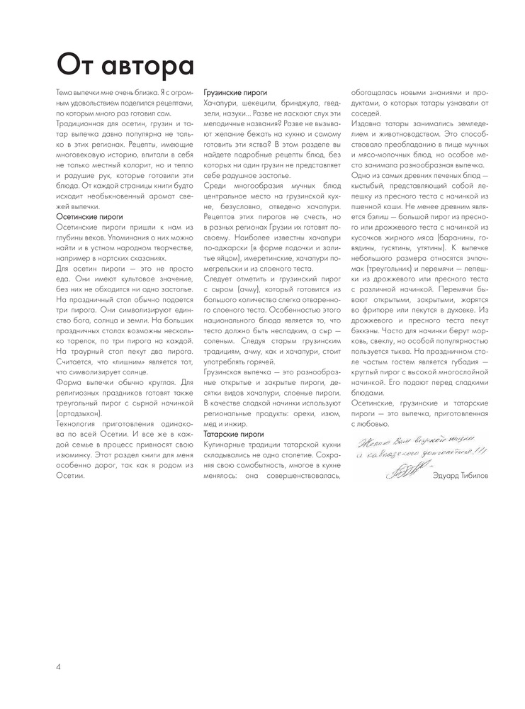 Осетинские, грузинские и татарские пирогиЭдуард Тибилов, Н. Э. Серебрякова В данный момент этот товар отсутствует в продаже. Возможно, у нас найдется аналогичный или похожий товар здесь. Серия: Кулинария. Готовят все! Пирог – символ благополучия, радушия, любви во всем мире. Каждый народ печет свои, особенные пироги. В каждом доме хранятся семейные рецепты выпечки и начинки для нее, прошедшие тщательную проверку временем. У каждой хозяйки заготовлены особые слова, которые она нашепчет настаивающемуся тесту. Наш эксперт Эдуард Тибилов предлагает вам познакомиться с рецептами национальных пирогов осетинской, грузинской и татарской культур. У каждого пирога своя история, свои особенности. Каждый пирог - отражение многовековых традиций. Изучайте, выпекайте, и пусть в вашем доме всегда царят уют, тепло и любовь! |