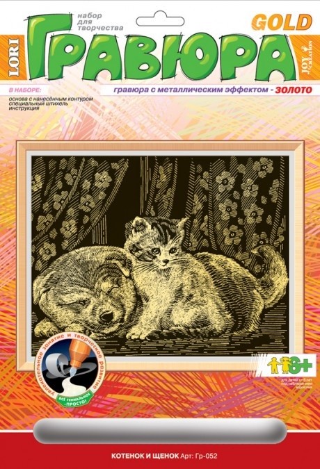 | Lori Гравюра с металлическим эффектом золота. "Котенок и щенок"