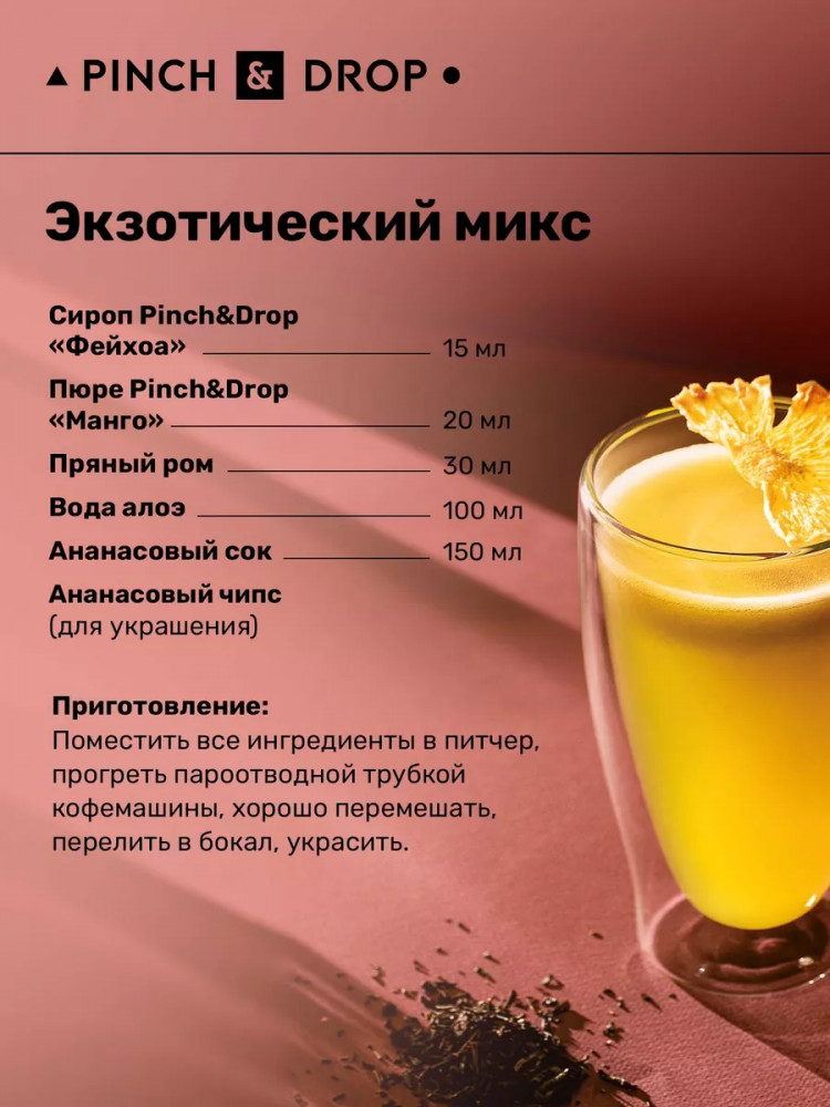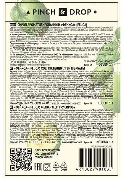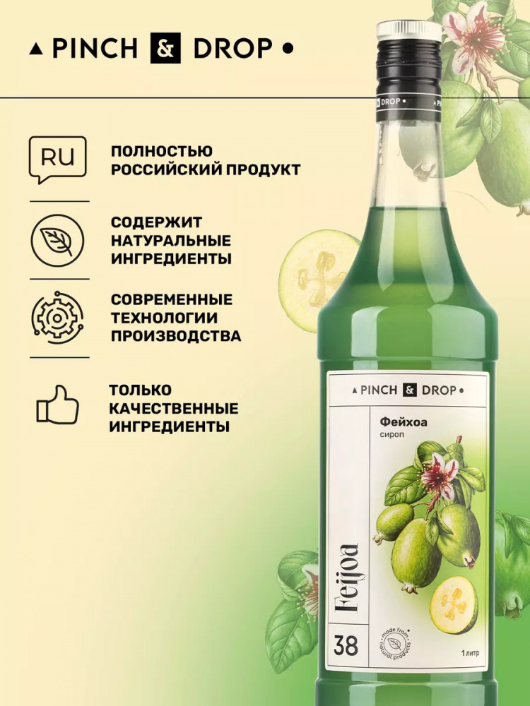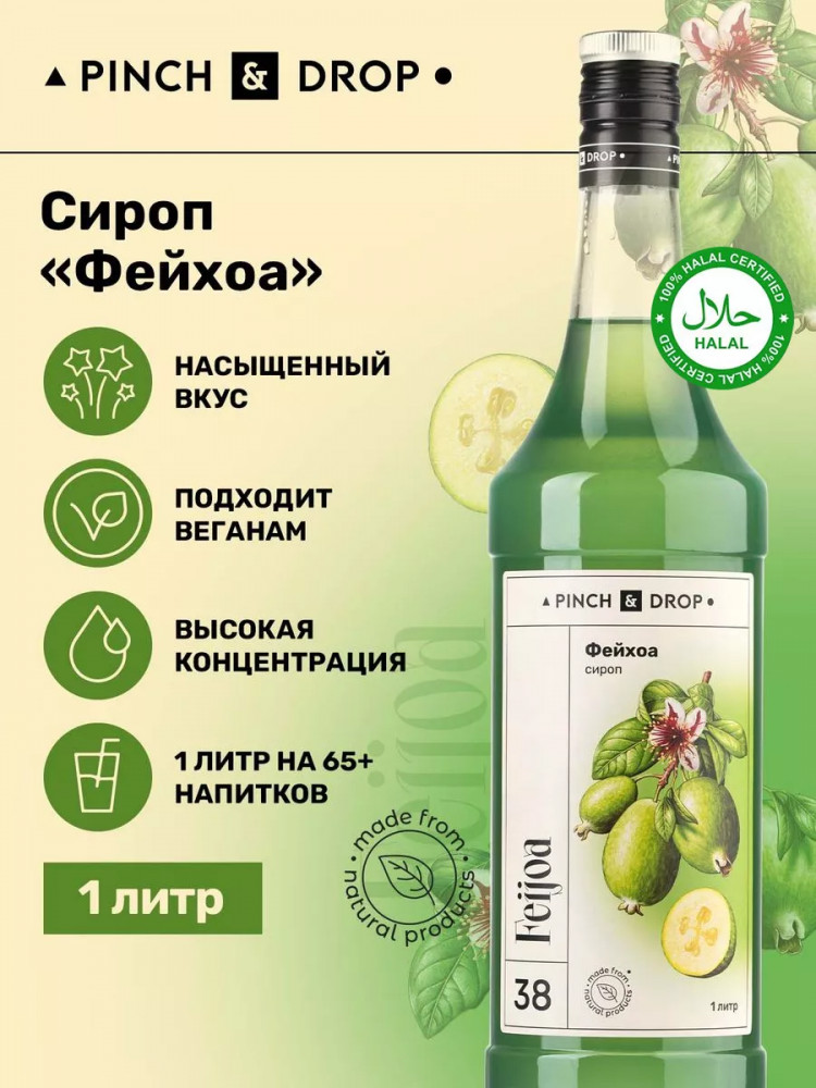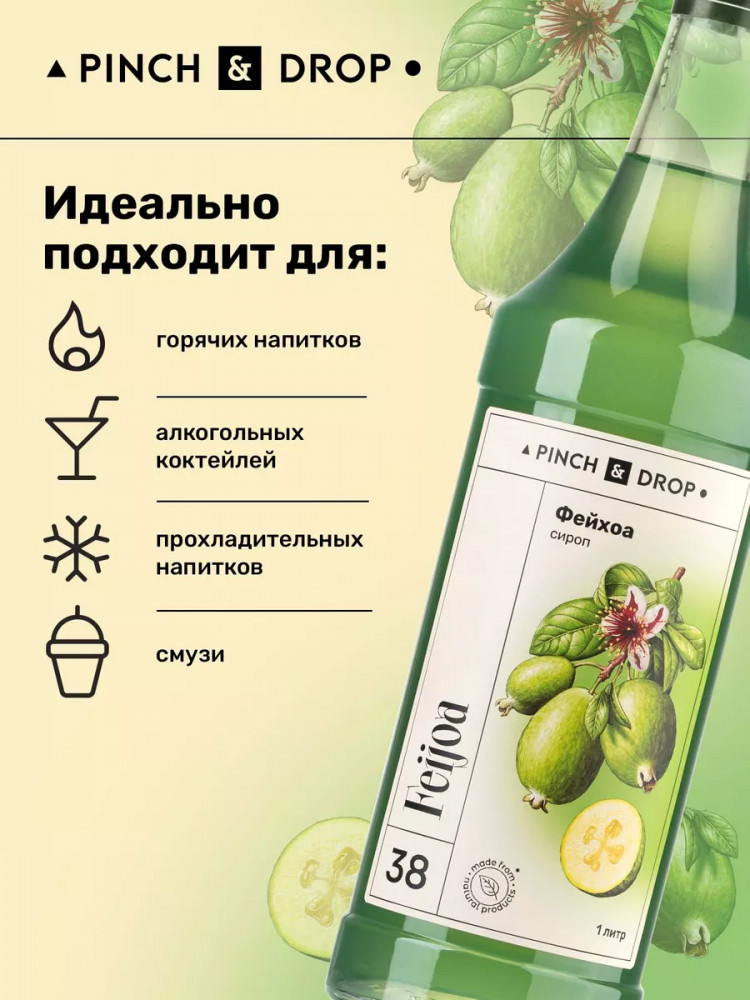 Сироп «Фейхоа» «Pinch&Drop» — экзотический вкус, который точно должен быть в коллекции кондитера или бариста. Он сделает неординарным любой напиток и дополнит яркими нотами еду. Сахарный сироп со вкусом фейхоа — новинка среди сладких добавок. Его яркий и нетипичный вкус манит и очаровывает. Ощущается сладость экзотического плота и выраженные сливочные ноты. При этом есть в оттенках легкая кислинка. Она не отталкивает, а, наоборот, освежает и придает энергию.
